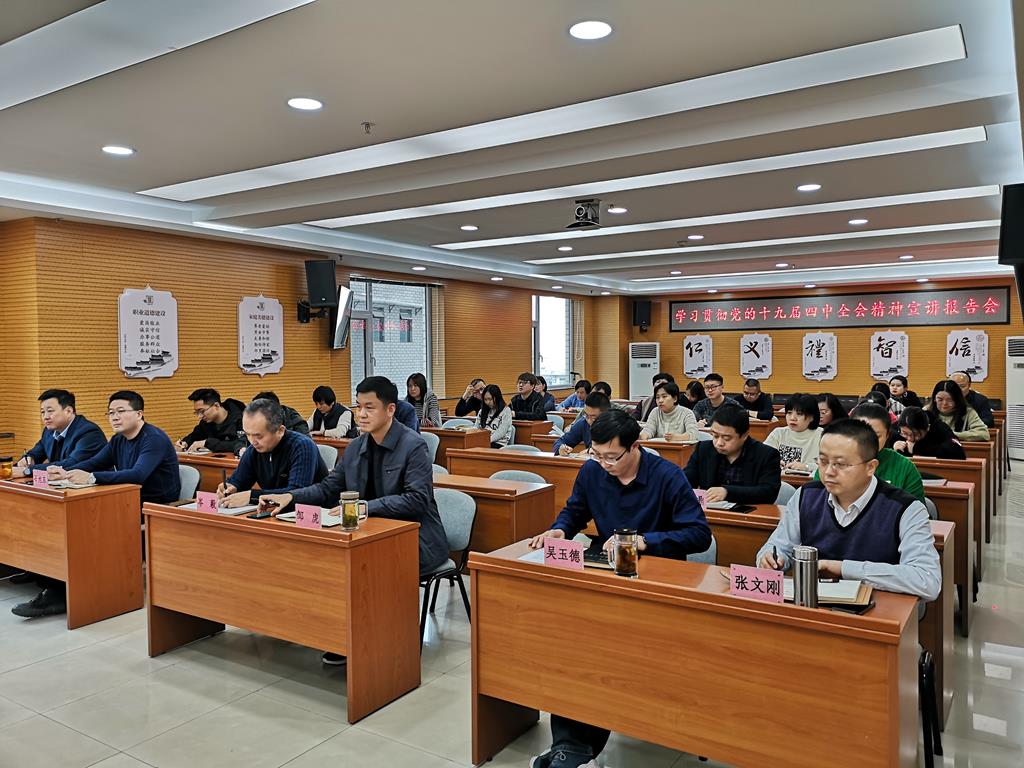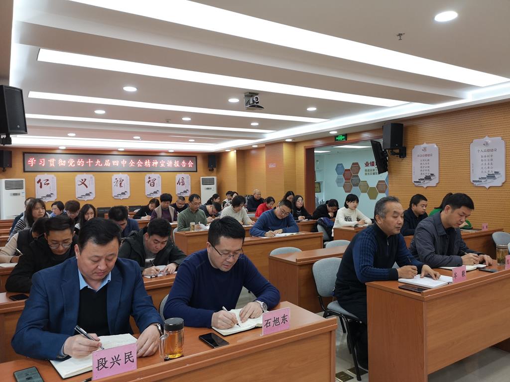 12月13日下午,集團(tuán)公司總經(jīng)理助理?xiàng)罴t到路橋投資公司宣講黨的十九屆四中全會精神。路橋投資公司中層領(lǐng)導(dǎo)、機(jī)關(guān)全體干部職工及各黨支部黨員代表聆聽講座。