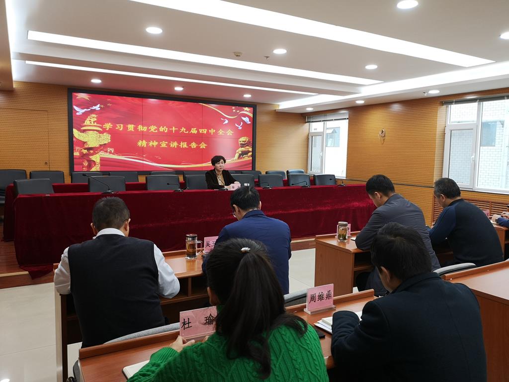 楊紅從“圍繞一個(gè)主線”“突出一條主線”“抓好兩個(gè)落實(shí)”“實(shí)現(xiàn)一個(gè)目標(biāo)”等四個(gè)方面,回顧了黨的十八大以來黨中央治國理政的制度優(yōu)勢、思想升華和實(shí)踐推進(jìn),探討了當(dāng)代世界和中國的重大理論與實(shí)踐問題,分析了國家制度和國家治理體系的顯著優(yōu)勢,分享了全面學(xué)習(xí)貫徹十九屆四中全精神的重大意義。
