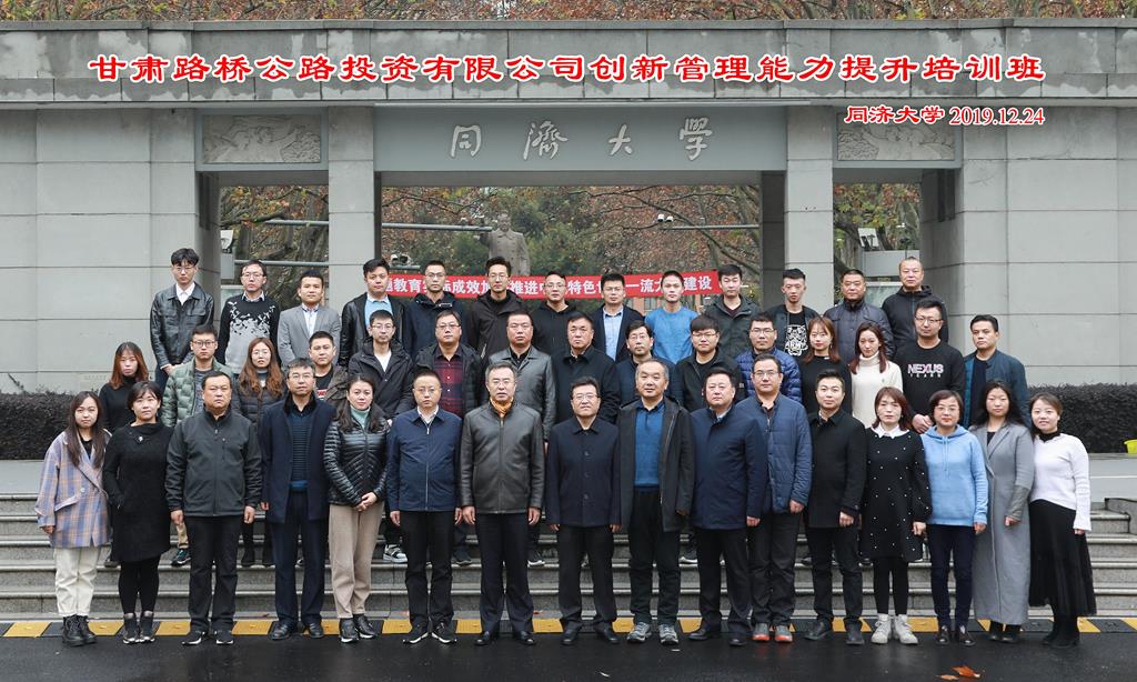 為進(jìn)一步提升公司黨員干部管理能力和綜合素質(zhì),營造“以學(xué)促思、以思促變、以變促干”的良好氛圍。12月24日,“甘肅路橋公路投資有限公司創(chuàng)新管理能力培訓(xùn)班”在上海同濟(jì)大學(xué)四平路校區(qū)順利開班。同濟(jì)大學(xué)繼續(xù)教育學(xué)院院長和路橋投資公司董事長出席開班儀式。