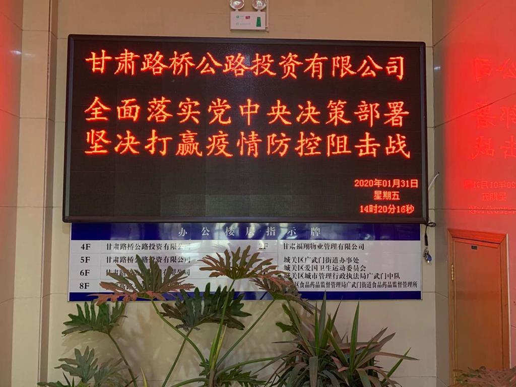 面對突如其來的新型冠狀病毒感染的肺炎疫情,路橋投資全體員工勠力同心,共克時艱。自1月26日接到集團公司《關(guān)于集團公司落實突發(fā)公共衛(wèi)生事件一級響應(yīng)進一步做好應(yīng)對新型冠狀病毒感染的肺炎疫情防控工作的通知》后,公司高度重視,第一時間下發(fā)了《甘肅路橋公路投資有限公司關(guān)于開展新型冠狀病毒肺炎防控工作的緊急通知》,及時成立了新型冠狀病毒肺炎防控領(lǐng)導(dǎo)小組,公司主要領(lǐng)導(dǎo)親自部署、親自落實、親自檢查,督促各項目制定了防控方案,要求項目辦主任要靠前指揮,率先垂范,嚴(yán)格落實帶班制度,帶頭深入各參建單位駐地了解具體防控情況,做到每天檢查、適時核對,做到情況明、底數(shù)清、數(shù)字準(zhǔn),切實做好疫情防控工作,確保黨中央、國務(wù)院和省委、省政府及行業(yè)主管部門、地方政府的一系列決策部署切實貫徹落實到位。