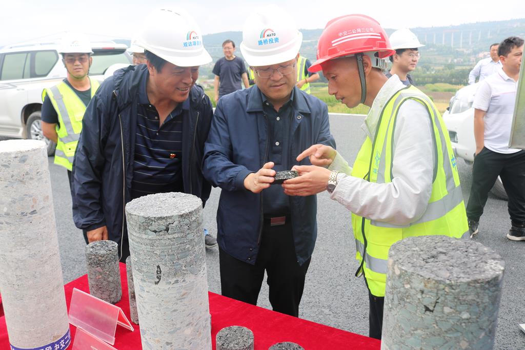 王曉鐘董事長(zhǎng)一行深入施工現(xiàn)場(chǎng),對(duì)三個(gè)項(xiàng)目的路基路面進(jìn)行了實(shí)地查看,詳細(xì)了解了項(xiàng)目施工創(chuàng)新以及品質(zhì)工程示范創(chuàng)建工作,聽取了項(xiàng)目建設(shè)進(jìn)展、質(zhì)量、安全、管理等方面的工作匯報(bào)。