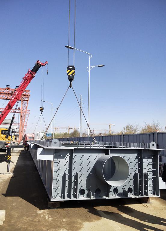 中川機場T3航站樓連接線建設(shè)項目首片30m“波形鋼腹板-鋼混組合箱梁”順利出廠