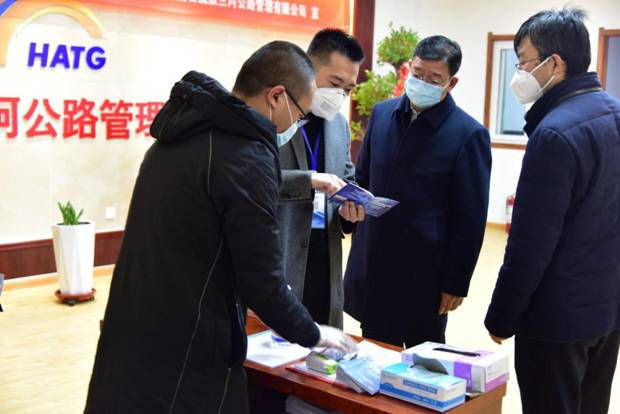 2月28日上午,省公航旅集團(tuán)公司紀(jì)委書記趙磊一行蒞臨蘭阿公路管理有限公司督查指導(dǎo)疫情防控和復(fù)工復(fù)產(chǎn)工作。趙磊書記一行現(xiàn)場(chǎng)檢查了蘭阿公司的疫情防控工作,詳細(xì)了解了蘭阿公司辦公區(qū)和生活區(qū)的消殺作業(yè)、出入人員的登記核查、施工單位勞務(wù)人員的篩查和管控、疫情防控宣傳教育等情況,觀看了蘭阿項(xiàng)目概況BIM視頻,聽取了蘭阿公司疫情防控和復(fù)工情況匯報(bào),同時(shí)肯定了蘭阿公司疫情防控及復(fù)工準(zhǔn)備所開展的工作。