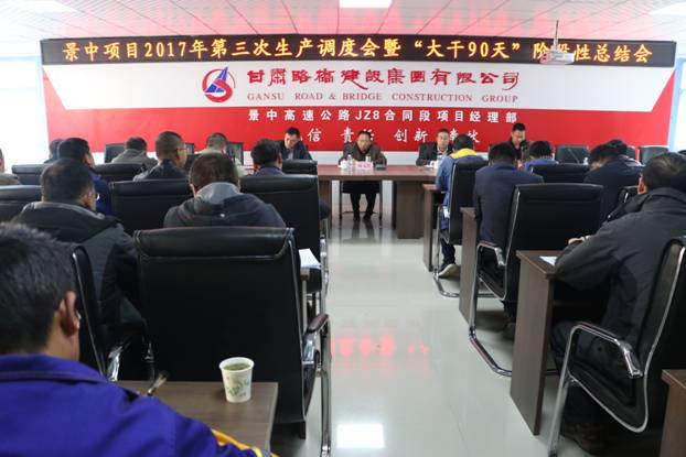 2017年11月10日,景中項目召開2017年度第三次生產(chǎn)調(diào)度會暨“大干90天”階段性總結(jié)會,項目辦全體管理人員、設(shè)計代表,中心試驗室、各監(jiān)理駐地辦、項目經(jīng)理部主要負責人參加了會議。